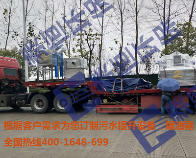 餐飲類廢水的處理找泰恒環(huán)保,無臭氣散發(fā)。多級(jí)油水分離處理新工藝。解決廢水中污泥處理的難題。2018年12月22日發(fā)無錫新區(qū)商場(chǎng)需要購(gòu)買2套分體隔油設(shè)備,下面是泰恒環(huán)保發(fā)貨場(chǎng)景: